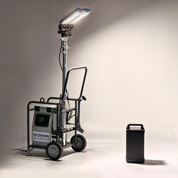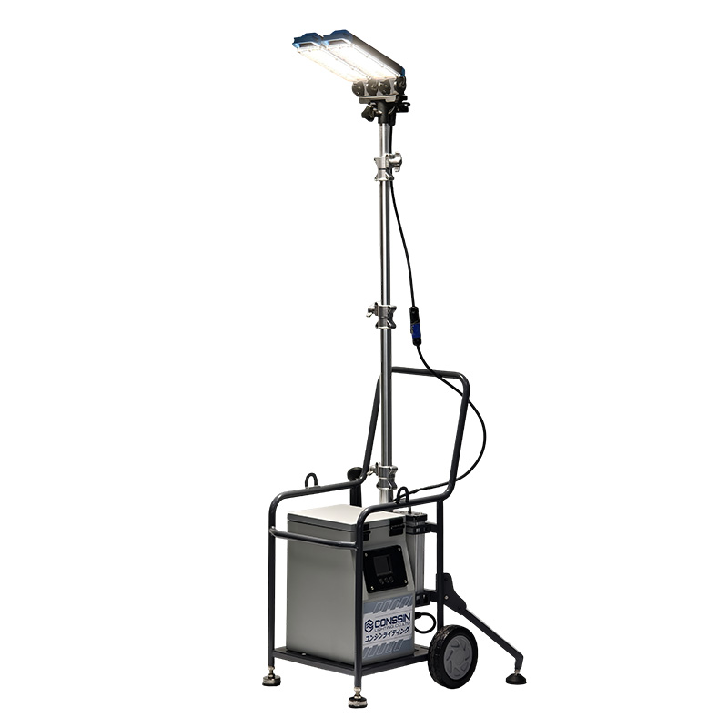 道路工事、建築場向けに特別に開発され、小型で軽量化、様々な状況に対応できる新型移動式投光器。