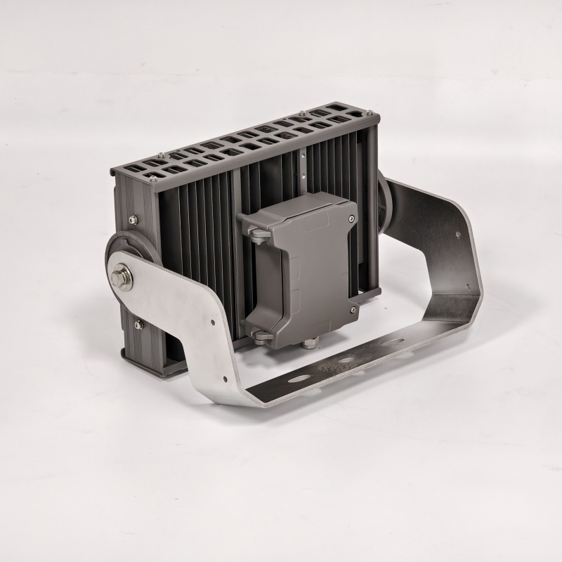 This High-Power LED Sports Area Light features a remote driver design to reduce heat buildup and extend service life. Engineered for demanding environments, it offers IP69 and IK10 protection against water, dust, and impact. With a high lumen output of up to 234,000 lumens per unit, it ensures consistent brightness across large areas.